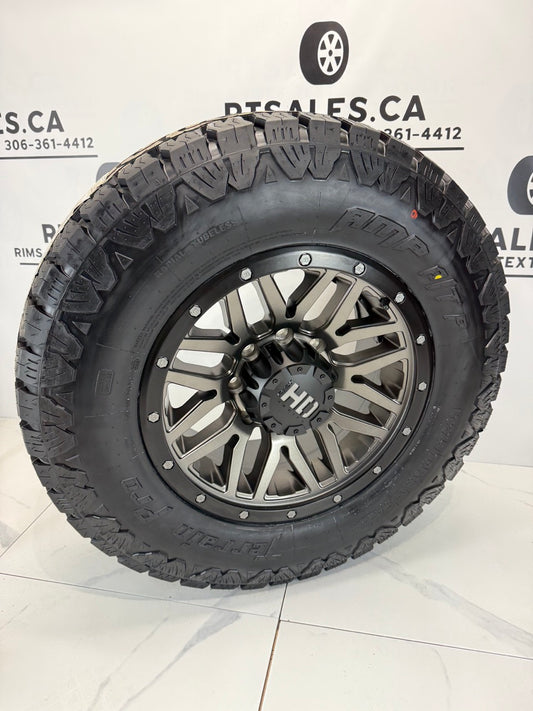 275/70/18 AMP All Terrain Tires on 18" Fast HD Rims 8x170
