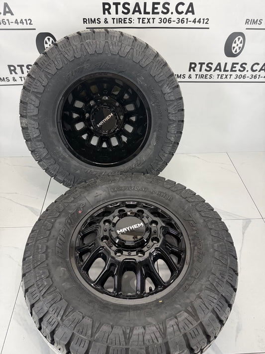 LT285/70/17 Amp Tires Mayhem Dually Rims 17 inch