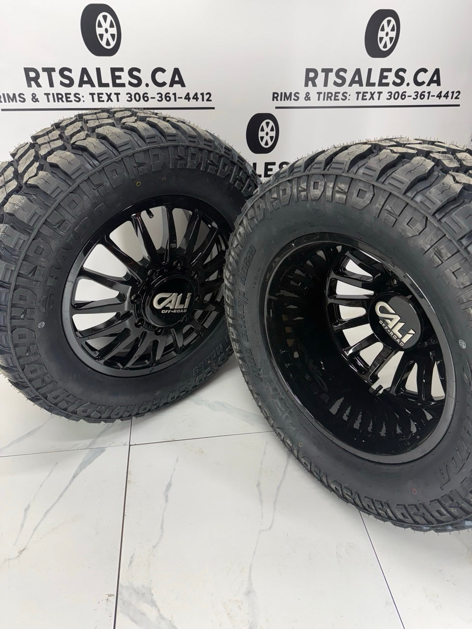 Haida Mud tires on 20x8.25 Cali Summit Gloss Black Dually Rims
